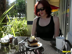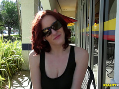 Not wanting to scare her away, we met with pale busty redhead Audrey Grace in a restaurant, but she was far from shy as it turns out. After a bit of talking, this hot tease took out her big tits and we got it all on camera!