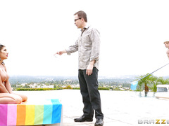 Rich housewife August Ames tends to spend a lot of time alone at her mansion, and her husband is at work all day. The devil loves idle hands, so August has been teasing Bill the hunky pool boy for weeks now. But, he's finally making a move, and oiling up her naked body during a hot sunbathing session.