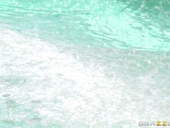 Courtney Taylor is an extremely hot lass with humongous bumpers. She seductively displays her enticing flawless body in slow motion. Her pussy lips and firm booty look even more appetizing as she bends over by the swimming pool.