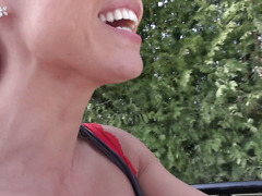 Extreme sports babe Franceska Jaimes sucking dick outside