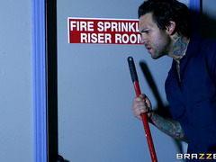 Abigail Mac is fooling around in the classroom by herself. She catches the attention of the janitor that is working there and the girl decides to give him a good show. She pushes a dildo in her exposed pussy and she turns him on.