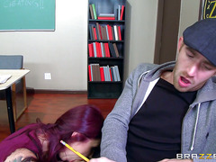 Monique Alexander is a strict teacher that requires much from her students. One guy is falling behind and she then motivates the dude by giving him a blow job with her pretty full mouth in the classroom.