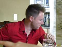 Ashley Fires and Jojo Kiss are together in the kitchen, having fun. The angry wife catches her husband as he is getting a blow job from her friend. The little slut that is around his cock does not stop the sucking.