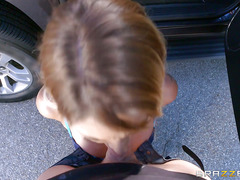 Kissa Sins is a busty slut that is picked up by a guy while she is walking on the side of the road. She is in her shorts as she is doing that and soon she gets on her knees to suck a cock and get face fucked as well