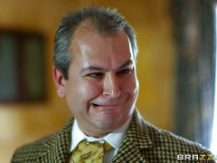 Erica Fontes is dressed as a maid in this video and she is revealing her large tits in the erotic video. Check out how she shows herself off to an old butler and how she keeps a serious look in her face as she is doing it.
