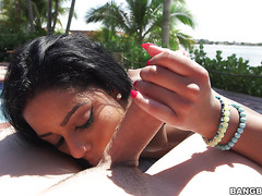 Dark Latina teen Aaliyah Grey devouring dick in the pool