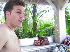 Jewels Jade is in the pool and she is sucking a cock in the pool and she has her eyes covered as she is doing that. The bitch is wet on the inside and on the outside while she is giving the hot performance in the video.