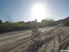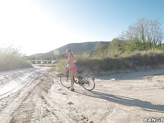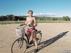 Busty Czech blonde Kathy Anderson riding her bike butt naked