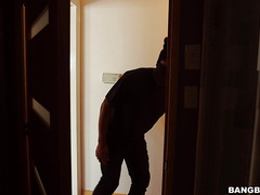 Tiny teen Elsa Dream interrupted by burglar while masturbating