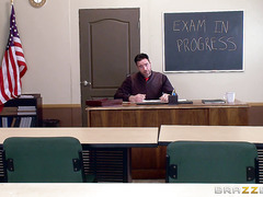 August Taylor is a chick with big tits and a sexy smile that is in her schoolgirl uniform. Her teacher tells her that she is about to fail her test, so she teases and seduces the guy to change his mind.
