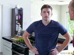 Kendra Lust is looking at the young guy in front of her and she is moving towards him. Her body presses against his in the kitchen and then she starts rubbing his pecker with her hand and he loves it.