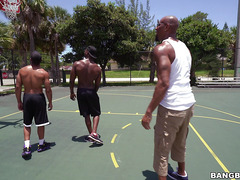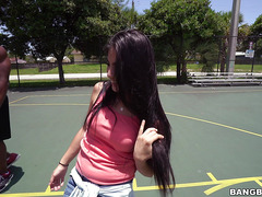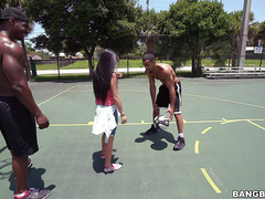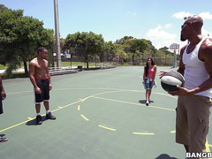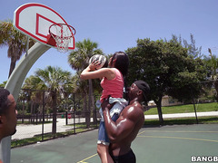 Michelle Martinez is playing some basketball with large black dudes outdoors. She shakes her awesome and tight ass for the men in this video and she turns them on with her amaznig booty really well in the scene.