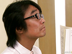 Suave Asian schoolgirl with a pair of big round tits Harumi Asano loves to seduce her horny teacher. She is sitting in front of him in a short skirt which exposes her smooth legs and she shows off her tender large boobs.