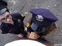 Sometimes when we feel in the mood to fuck, we just pull people over and make them fuck us. We’re the law we get to do what we want. So we pulled over this guy and made him fuck us in order to get away from going to jail. He banged both of us all over our patrol car. Once the deed was done it was time to arrest the motherfucker. That's right, you can’t fuck with the law.