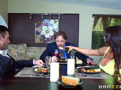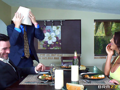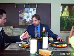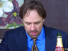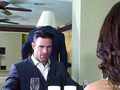 Slutty brunette wifey August Taylor is ready to seduce a businessman