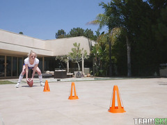 When it comes to football drills, Iris is an all star. She can juke, catch, and even run faster than most wide receivers in the NFL. After her warm up, her trainer comes over to give her a good stretching before she gets into the more intense part of todays practice. Even though she always has her head in the game, she couldnt help but to admit to him that she was pretty horny. She was done doing drills and was ready to start getting drilled. Iris sucks that fat dick down faster than an energy drink at halftime. She was pumped up and ready to be filled up. That tight teen pussy got drilled harder than a sucky team with a strict coach, giving her an orgasm more intense than the final seconds of a crucial game. Iris definitely carried the team on her back this round, and the cum all over her face too!