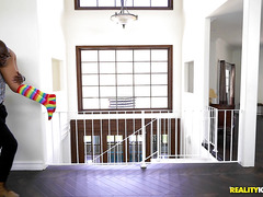 Maya Bijou heard the gossip about her GF's dad, Sean. The neighborhood girls said he swung a huge dick that resembled a python. Therefore, Maya decided to creep into his house wearing a sexy outfit. When Mr. Sean arrived from work he found a pleasant surprise in his fridge. Maya surprised him and then begged to see his cock. Mr. Sean initially refused but after looking over Maya's tight teen body he reconsidered. He carried her on his shoulder to the living room where he stuffed her pretty mouth with his schlong. After giving Maya more than she can swallow, Mr. Sean relentlessly fucked her sweet wet pussy all over the place and then shot his load on her beautiful face.