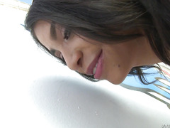 Sassy, young Latina doll Veronica Rodriguez has never fucked director Mike Adriano before, but the gorgeous slut wants her sweet pussy filled by the dirty pornographer's big, thick prick. Spreading her taut ass cheeks, Mike explores Veronica's tender butthole with his tongue and finger. She kneels and gives the director's huge tool a slobbery, gagging blow job. Veronica takes a cock ride, her little, brown booty bouncing with pleasure. This epic fuck makes the little tart squirt in orgasm, and Mike cums three times in her pretty mouth!