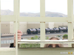 When Nicole wants cock nothing can stop her from getting it. Her next target is Charles, who has no idea why this porn star is following him in public. After trapping him on a roof she clues him in by getting naked and fucking his brains out.