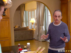 Reagan Fox is the wife of an older man, who is cranky and in need of a nap. Reagan tries to convince her husband to lie down but she also wants to cool off by turning on the air conditioner. To her dismay, her husband refuses to waste electricity. Reagan is therefore left with no choice but to find another way to beat the heat--by sucking and fucking her step-son Kyle Mason's dick!
