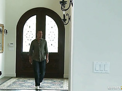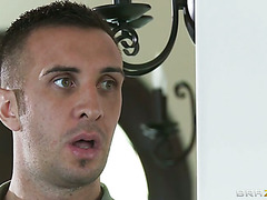 Lily Carter seducing Keiran by showing him her 100% natural perky tits