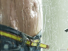 Captivating brunette cutie with an amazing body Lily Carter loves seducing kinky men. She is a master when it comes to making cocks hard, that's why she is wearing short shorts and a skimpy top in front of one horny dude who immediately takes notice of her perky titties.