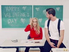 Brandi's a hot, love-starved teacher who despite her big tits can't seem to land a man. Alone again on Valentine's Day, she grades papers in her empty classroom - but decides to celebrate the holiday by fucking her favorite dildo at the same time. Just when she's about to cum one of her slacker students drops by, and Brandi decides to take charge of her love life by giving him a taste of teacher titties!