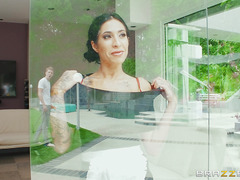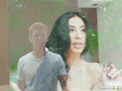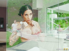Brunette hottie Stacy Jay soaping her nice big boobs