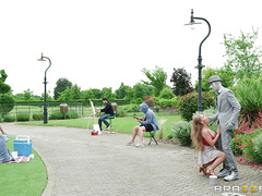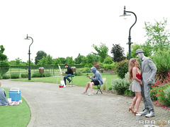 AJ Applegate and Megan Rain sucking big cock outdoors
