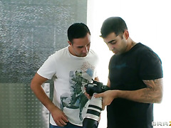 Curvy mature Diamond Foxxx shows off her mesmeric body to two perverts who snap pictures and instruct her how to best pose. After losing her lingerie, she makes two stellar tits visible but also massages her shaved pussy slowly while teasing.