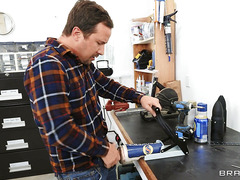 While Jessy Jones' wife likes to give him shit for being lazy, his visiting sister-in-law, Kayley Gunner, loves the attention she gets from him, his eyes unable to resist checking out her hot body. Kayley sends Jessy a sneaky pussy pic, motivating him to retreat to his workshop to build a contraption to fuck (since he's not getting any sex from his wife), using Kayley's pic as inspiration. When Jessy's prototype is complete he gives it a go, and wouldn't you know it, it feels almost as good as the real thing... almost. A curious Kayley peeps on Jessy and when the embarrassed husband catches her, she approaches him for a closer look at his latest creation before giving him something better to fuck: her sweet wet pussy!