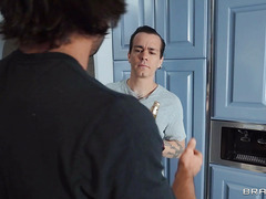 The sexy Phoenix Marie thinks she has the house to herself today, but she's surprised when her husband comes home early to watch a sports game, with his friend Johnny Castle. Unfortunately for the husband, Phoenix and Johnny seem to have some romantic history together and the pair can't keep their eyes off each other. When Phoenix goes to do dishes later, she finds herself stuck in the dishwasher. Johnny comes in and decides to make use of that pussy sticking out. Johnny fucks Phoenix to free her from the machine, then they continue banging around the kitchen... until the poor husband catches them.