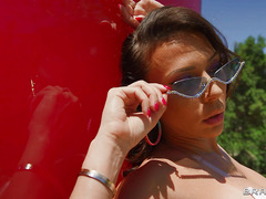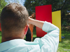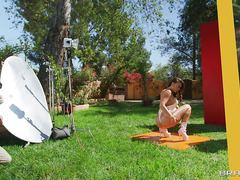 The stunning Rachel Starr is posing for professional photographer Van Wylde. Confident and fierce, Rachel loves showing off the clothes she's wearing. She soon starts to boldly tease Van by lightly undressing and making suggestive poses. When aroused Van asks Rachel if she's hitting on him, Rachel smirks. "I guess you turn me on.' Rachel's persistent tease takes an unambiguous turn when she grabs Van's bulge and suggests they have sex.