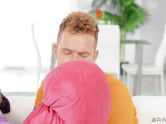 Advoree is horny and in the mood to fuck, but her dull boyfriend is gearing up to watch the big sports game. Advoree improvises by humping a pillow in her room, but is embarrassed when the boyfriend's friend Van Wylde walks in on her. Van is clearly into her, so Advoree decides to make a move on him; she follows him to the living room and sits on the couch with the guys. She slyly teases Van until he's fucking her, right under Advoree's boyfriend's nose! How long can they keep this sneaky fucking up for?