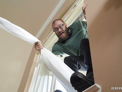 Petite Mena Carlisle is always up to no good and, despite being a perfectly capable adult, her overbearing dad always has a watchful eye on her. Today, horny Mena steals the household robotic vacuum and straps a dildo to the front. Mena uses the vacuum to penetrate her tight pussy until her dad busts her in the act! He's shocked by her deviant behavior and tells her to stay in her room until she's ready to apologize for her perverted antics. Looking out her window, Mena can't help but notice the hunky landscaper, Xander Corvus, working in the backyard. Playful Mena is ready to put her horny brain-power toward getting Xander out of the sun and into her pussy!