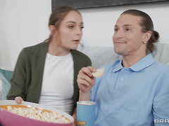 Jay Romero is watching a movie with his girlfriend and their mutual friend Sofi Ryan. While the girls watch the movie, Jay is preparing a little prankÖ sticking his big dick through his bottomless can of chips. While his girlfriend is distracted, Jay reveals his dick to Sofi, who gladly gives him a handjob until cum flies out of the can. Now Jay and Sofi both just want to fuck and start having sneaky sex in the kitchen and on the couch, but how long can the keep Jayís girlfriend from figuring things out?