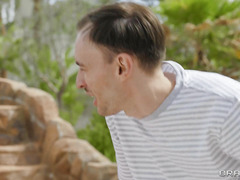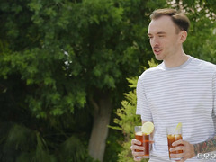 Luna Star has just moved into a house with a pool in the backyard and she's invited blonde Charli Phoenix over to enjoy it. Luna's husband is faithfully doting on them. He has no idea, but sexy Luna and Charli are more than just 'friends.' Thank god for oblivious husbands! When new pool guy Damion Dayksi arrives, the two can't take their eyes off of him. Luna and Charli take turns sneakily seducing big-dicked Damion until they finally agree that three is more fun!