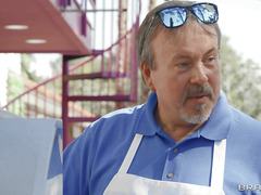 Gorgeous Tommy King and her cocky hubby are having their new neighbor, Mick Blue, over for a BBQ. Tommy is feeling horny, but her husband is way too distracted with the BBQ to care - he's the BBQ KING! Tommy rolls her eyes and looks for another way to entertain herself. When Mick arrives, petite Tommy has found the cure for her sexual frustration. Mick drenches Tommy's perfect, round, ass in oil and the two go at it right under Tommy's husband's nose. Tommy loves getting her tight asshole filled by a throbbing cock, and it feels even better when it's not her husband!