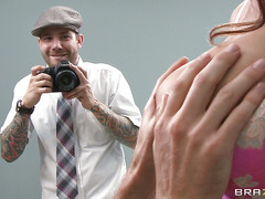On the set of a PSA against sexual harassment Busty babe Sandee Westgate thought it would be appropriate to try and seduce her co-star Jared by taking out her hooters for some big tits worship with lots of groping.