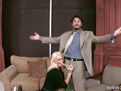 Tommy Gunn is stoked to present sex expert and therapist Rhylee Richards on his hit talk show. Blonde mom Rhylee surprises him with her hands on approach and sends his producers scrambling for damage control while she gives the host a big blowjob.