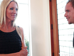 Mature American blonde and a hot shot producer's ex wife Emma Starr gets a visit from a young delivery guy and aspiring actor. He's willing to do anything to land a role including licking her blonde pussy for hours on end.