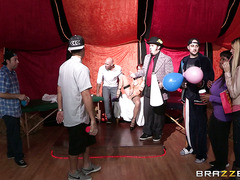 Folks have come from miles around to see Nora Noir and her incredible squirting pussy at the Circus Squirtus. But when Johnny Sins and Veronica Avluv check it out, Veronica thinks she can do better! The lovely ladies enlist Johnny and his fat cock to help prove once and for all who the best squirter in town is. First, they rub their pretty pink pussies until they're both squirting all over the floor, and then Johnny gets in on the action. He licks, fingers, and fucks both of their dripping wet pussies until they're squirting over and over like a couple of sexy geysers, but who will take the title of the world's number one slutty squirter at the Circus Squirtus?