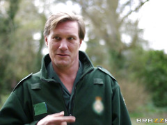 Kerry Louise is a gorgeous EMT but her huge tits have always gotten her into trouble. That's why when this bearded stud got his cock caught in a zipper and she freed it, she was more than happy to use her plump boobs and luscious lips to make sure it still works.