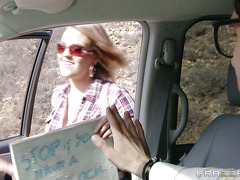 Krissy Lynn is an intrepid explorer hitchhiking her way across the great ol' US of A. On her way she flags down Mick Blue for a ride and he finds her story fascinating but not as much as her big tits so he gets her to show em off.