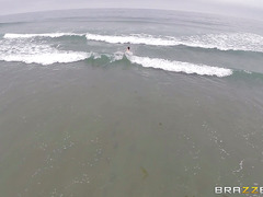 What a delight taking a walk on the beach and even more so seeing a sexy redhead like Penny Pax stretch in her little bikini thinking no ones watch and going out to surf the big waves with her tits bouncing all over the place.