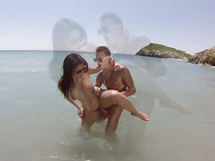 Pure bred and Italian, brunette Valentina Nappi is the epitome of a femme fatale and this tattooed stud has, of course, fallen for her charm. They head into the warm ocean water on empty beach and bang their brains out in the shallows while standing.