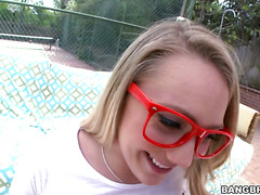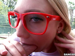 Mr. Anal always gets the hottest chick and hot blonde Kaylee Evans is no exception. This nerd girl with big red glasses may seem like a timid bookworm but don't be fooled, she's a whore for cock sucking if there ever was one and shows it outside.