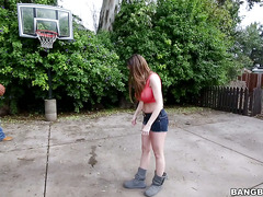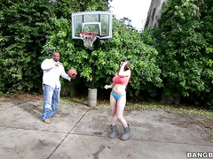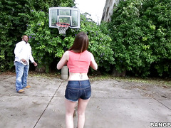 Big tits brunette Brooklyn Chase can't play ball for shit but she's great to look at. This black dude got her to lose her clothes little by little and before she knew it she was teasing with her melons in lingerie.