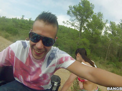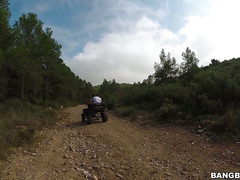 Aletta Ocean flashing her tits while four-wheeling