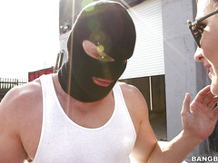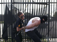 Office Molly Jane is out in the streets of Miami every day, but without much action so when she receives a dispatch call about a hooded man wrecking car windows with a bat, she springs into action and apprehends him. Having power over this dangerous criminal, gets her horny so she shoves his face into her pussy.